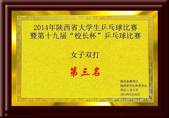 2014年陕西省大学生乒乓球比赛暨第十九届校长杯乒乓球比赛女子双打第三名