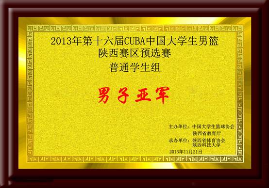 2013年第十六届CUBA中国大学生男篮陕西赛区预选赛男亚军
