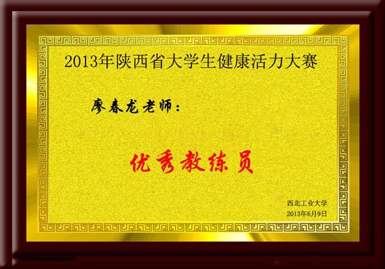 2013年陕西省大学生健康活力大赛廖春龙优秀教练员