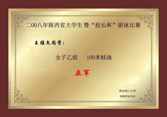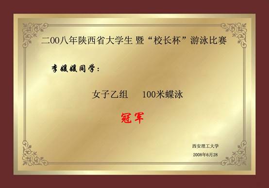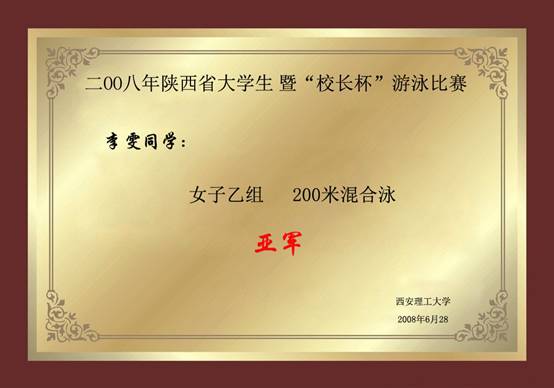2008年陕西省大学生暨校长杯游泳比赛 李雯女子乙组200米混合泳亚军
