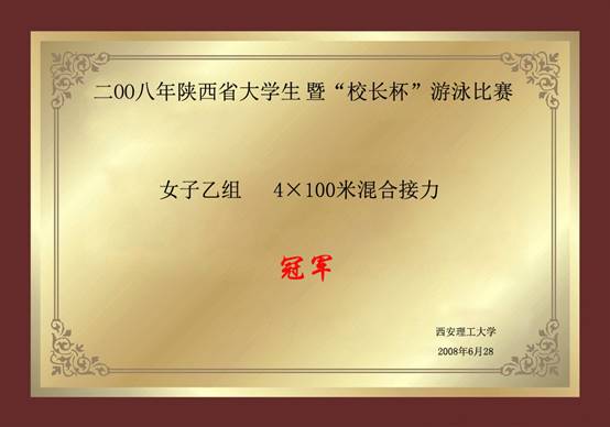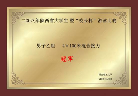 2008年陕西省大学生暨校长杯游泳比赛 男子乙组4x100米混合接力冠军