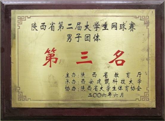 陕西省第二届大学生网球赛男子团体第三名