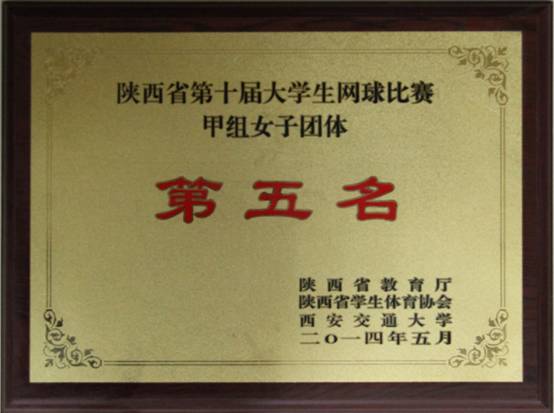 陕西省第十届大学生网球比赛甲组女子团体第五名