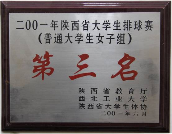 2001年陕西省大学生排球赛(普通大学生女子组)第三名