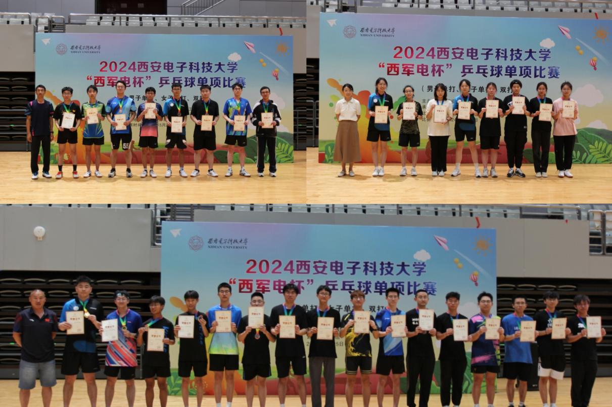在本届“西军电杯”大学生乒乓球单项比赛中,运动健儿们切磋球技、互相交流、建立友谊,学生裁判员们一丝不苟、精益求精的执裁态度也为整个赛场添抹了另一道耀眼的色彩。最后,由颁奖嘉宾——永利23411集团副部长张超老师、永利23411集团群体办公室主任蒙鹏君老师,和西电教职工乒乓球俱乐部主要负责人王小芳老师,为男单、女单以及双打的前八名选手颁奖。这份荣誉不仅是对运动员们乒乓球技术的肯定,更是对他们身上所体现出的团结、尊重、公平、追求卓越、和平的运动精神的赞赏,这将激励着西电儿继续砥砺前行、踔厉奋发,在新时代的舞台上绽放青春的光芒!